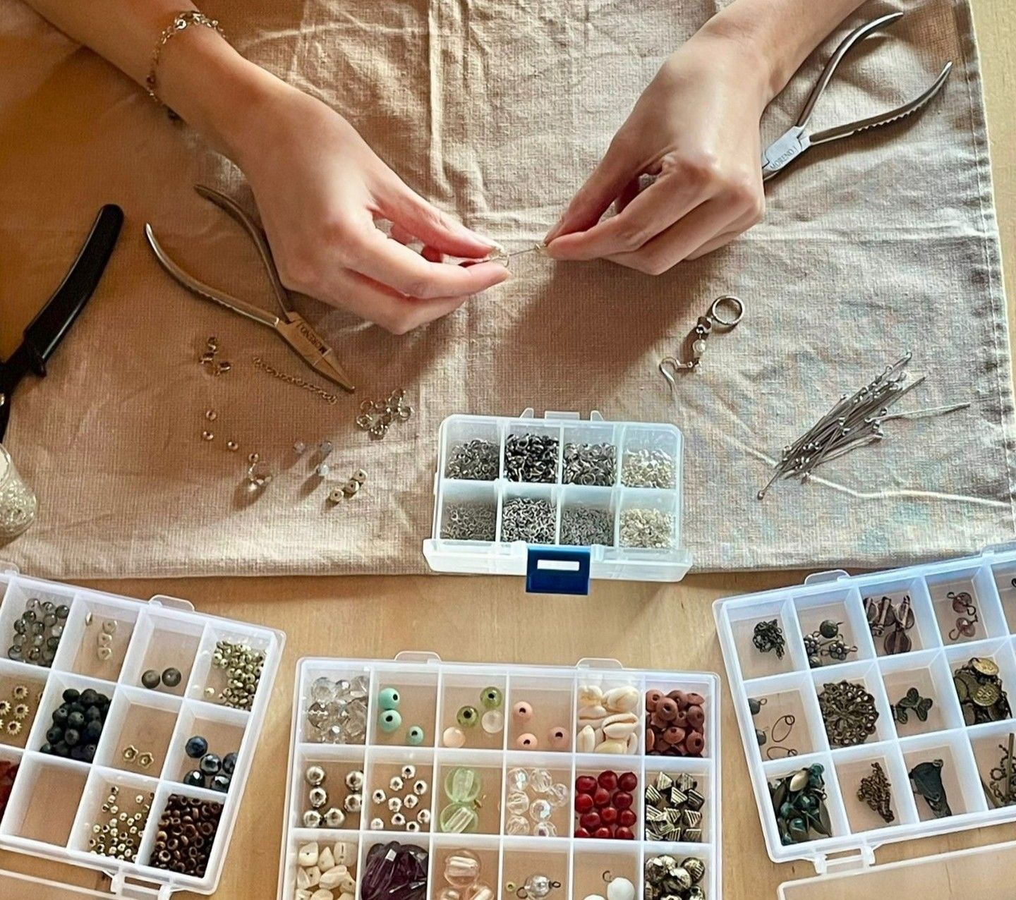 Je récupère vos anciens bijoux, qu’ils soient en métal, perles, pierres ou autres, pour les transformer en pièces uniques et artisanales. Chaque bijou recyclé est conçu avec soin, en respectant l’âme des matériaux et en leur redonnant tout leur éclat.