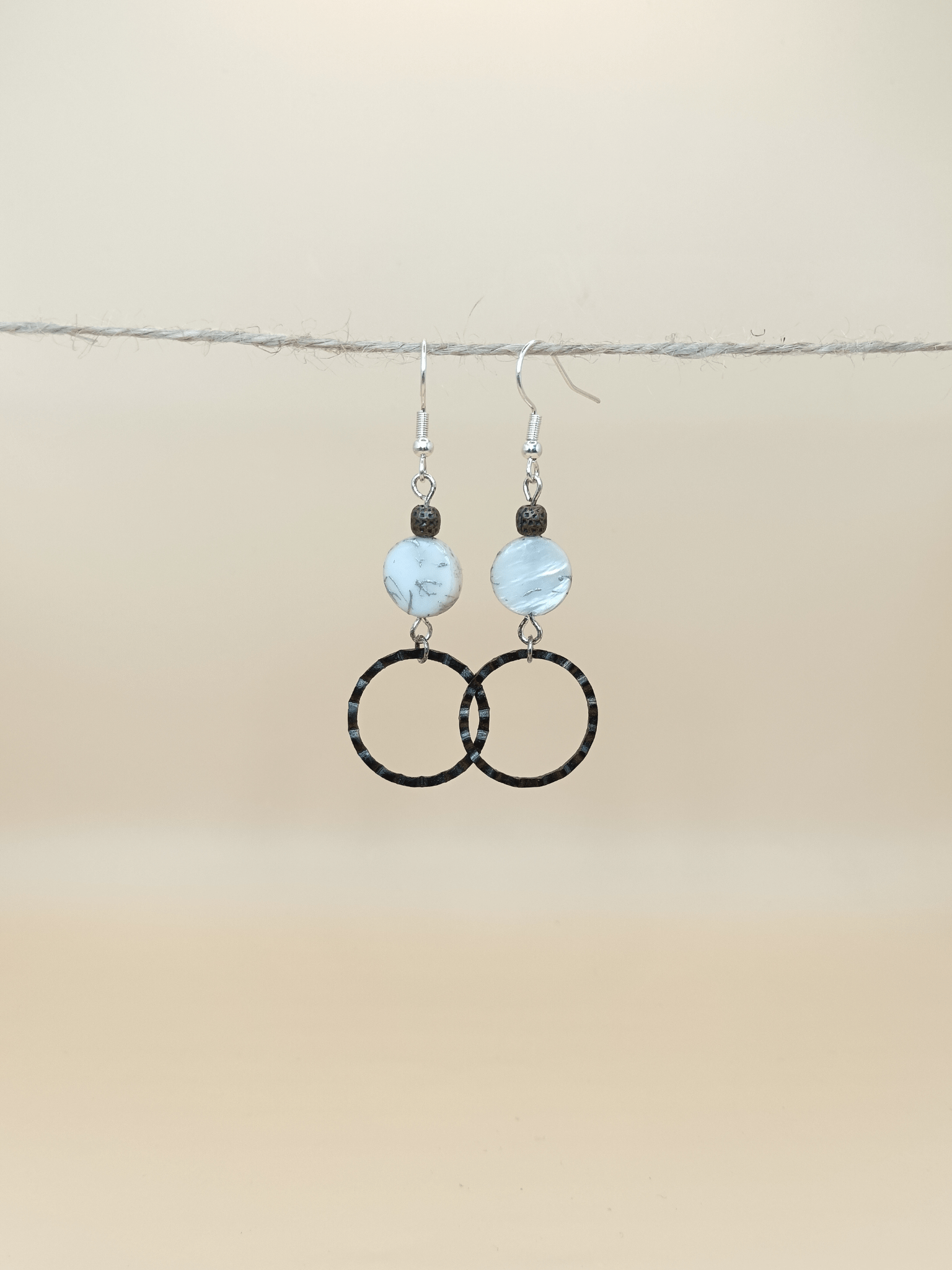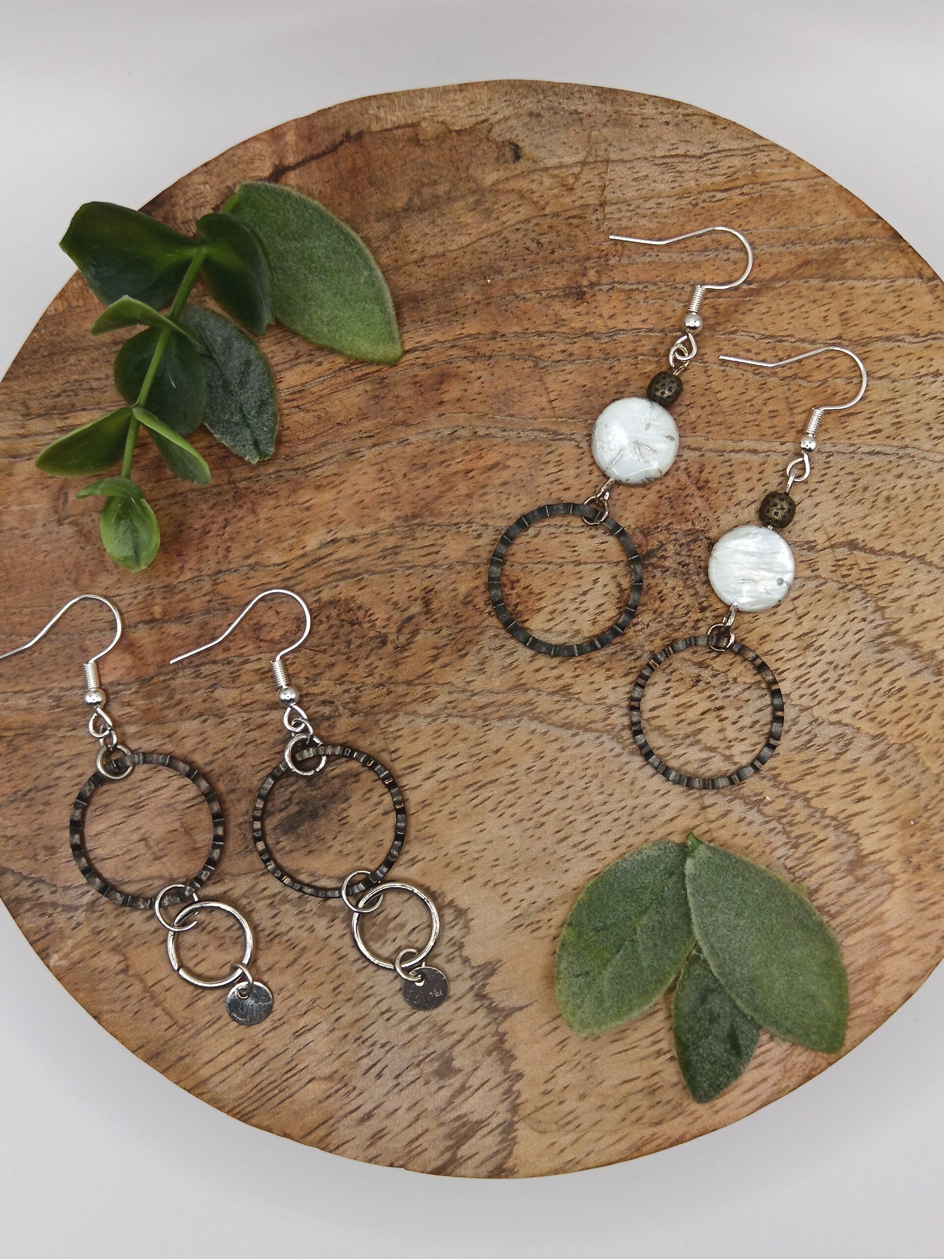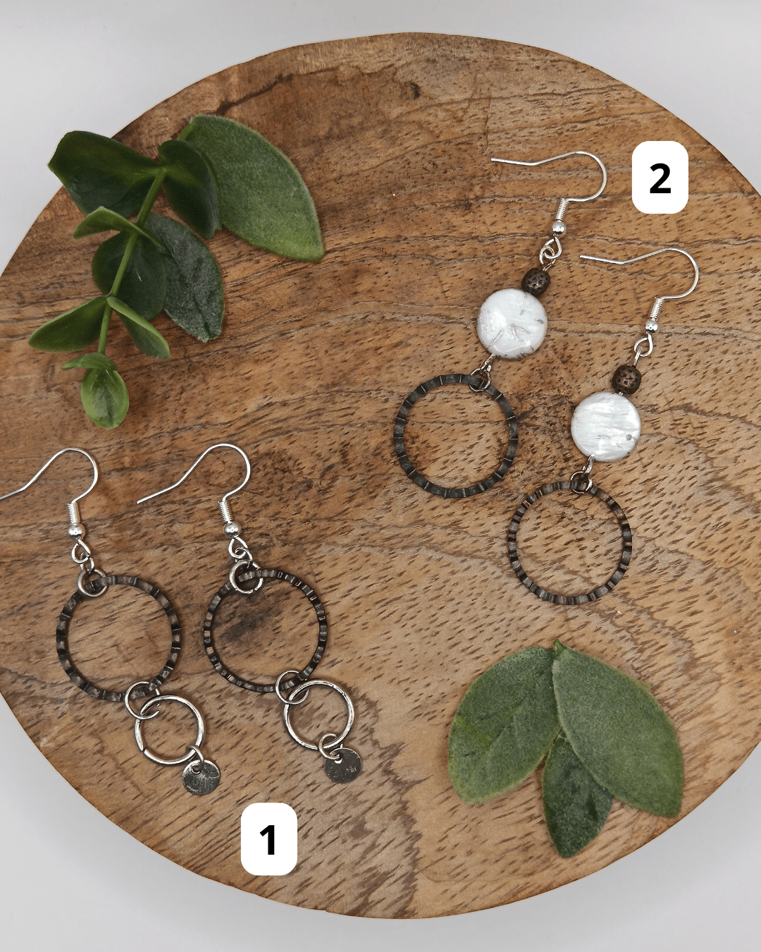 Boucles d’oreilles 2 : Longueur = 5 cm sur largeur = 2 cm.